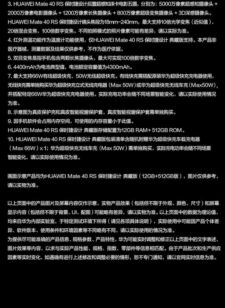 - 产品名称:Huawei/华为 Mate 40 RS ...