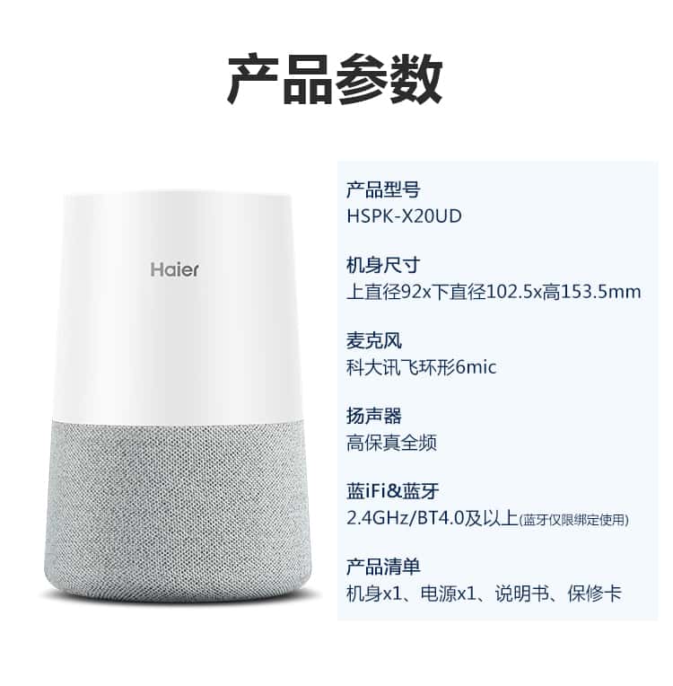 Haier/海尔 AI音箱wifi人工智能音箱家用声控家居蓝牙音乐音响X20