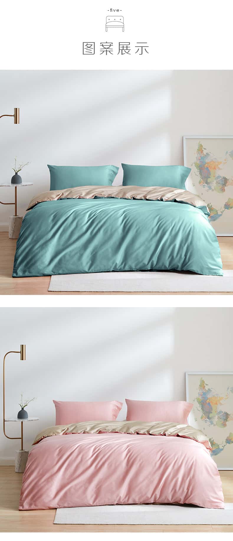 适用床尺寸: 1.5m(5英尺)床 适合200*230被芯 1.8m(6英尺)床 适合220*240被芯