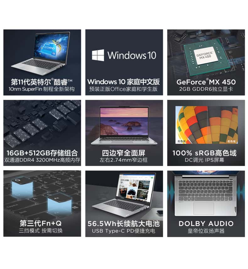 联想小新Air14 2021 英特尔酷睿i5 轻薄笔记本电脑14英寸全面屏i5-1135G7/16G/512G/MX450
