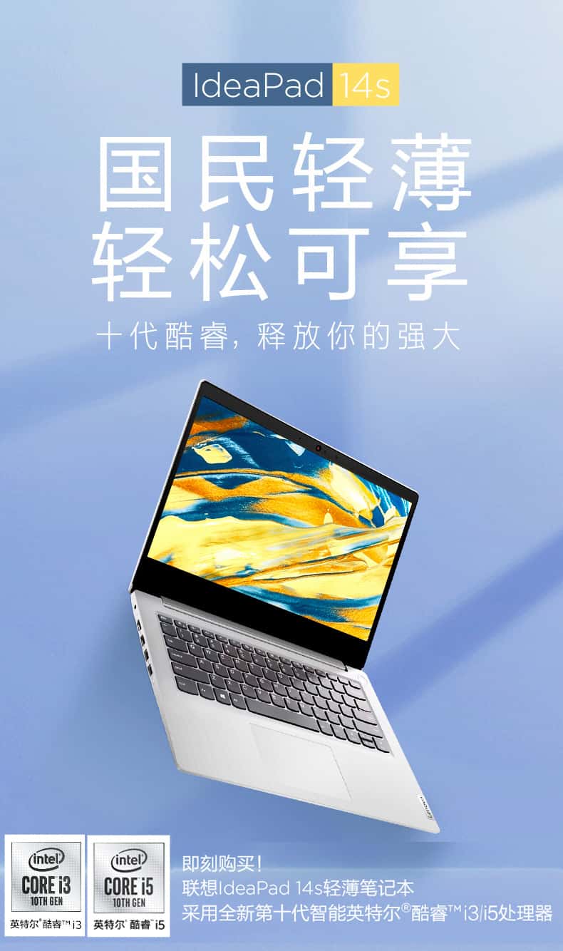 联想 IdeaPad 14s 英特尔酷睿i3 14英寸轻薄本笔记本电脑 i3-10110U/8G/512G 学生网课办公