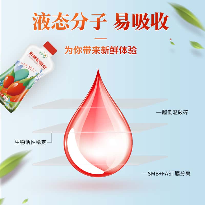 宁夏头茬鲜枸杞生榨果汁 30ml*10袋红枸杞原浆